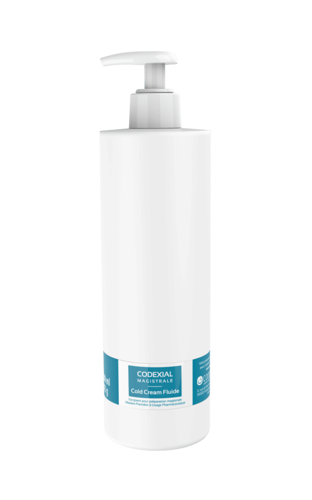 Codexial Magistrale Cold Cream Fluide est un excipient dermatologique émulsion eau dans huile, avec une action émolliente à forte rémanence, utilisé en préparation magistrale pour les soins des peaux sèches à très sèches à tendance atopique.