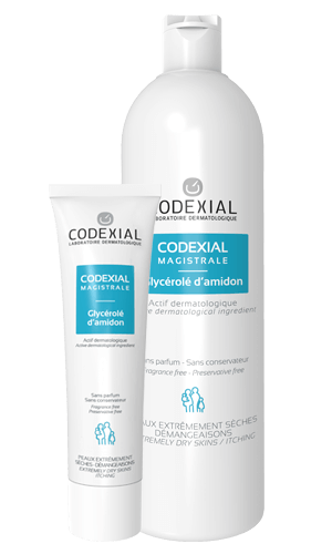 Codexial Magistrale Glycérolé est un actif dermatologique qui s’utilise en préparation magistrale pour le soin des peaux extrêmement sèches et sujettes aux démangeaisons du nourrisson, de l’enfant et de l’adulte.