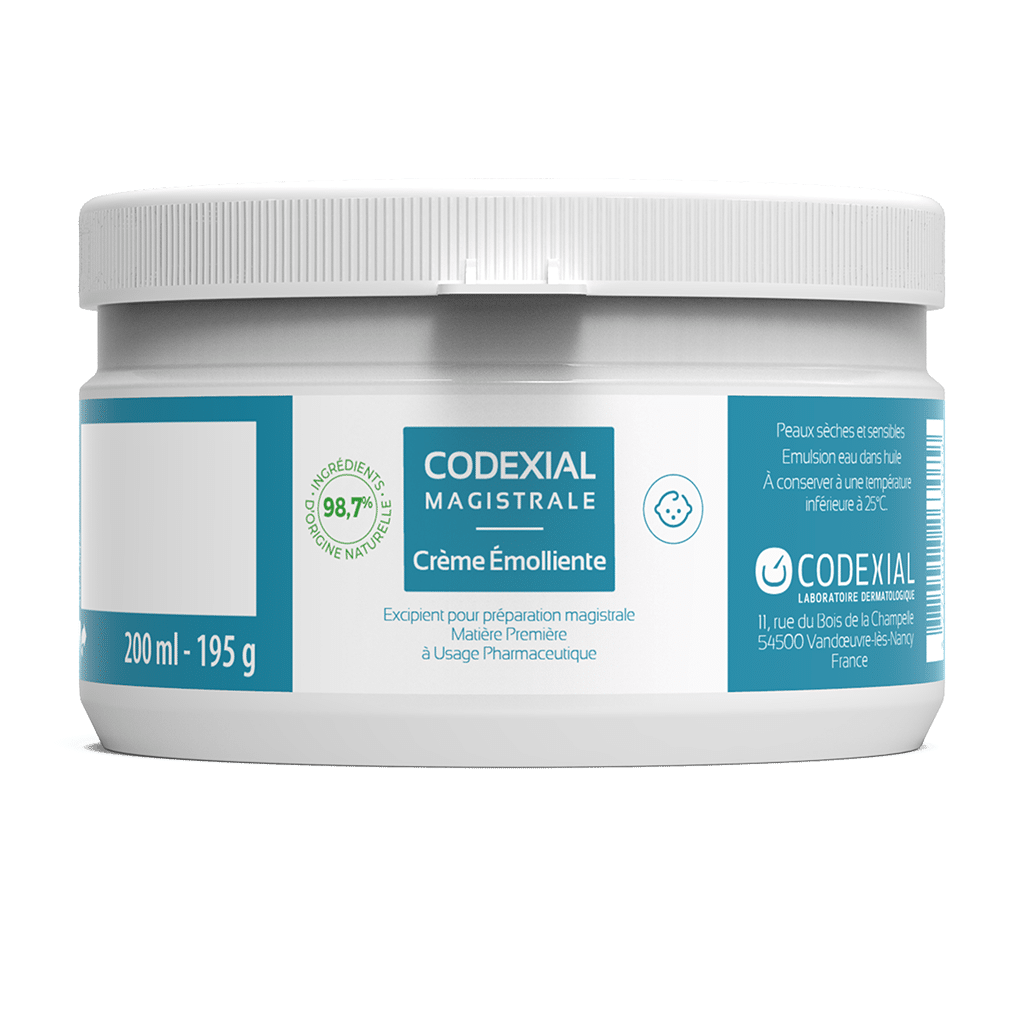 Crème Émolliente Codexial Magistrale est un excipient à visée dermo-pédiatrique notamment destiné aux sècheresses des peaux à tendance atopique ou ichtyosique.